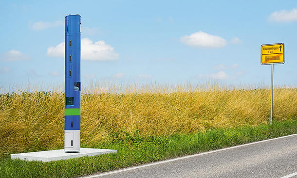 Keine Angst vor Mautsäulen (blaue Blitzer) Seit einiger Zeit stellt das vom Bundesverkehrsministerium mit dem Betrieb des Lkw-Mautsystems beauftragte Unternehmen Toll Collect neue blaue Kontrollsäulen auf, die auf den ersten Blick für einen Blitzer gehalten werden könnten. Doch egal wie schnell Autofahrer an den "blauen Blitzern" vorbeifahren, ein teures Foto bekommen sie hier nicht. Der Hintergrund der auffälligen Säulen ist die Lkw-Maut, die von Toll Collect nun auch abseits von Autobahnen permanent kontrolliert werden soll. Ab dem 1. Juli 2018 tritt die Erhebung der Lkw-Maut in Deutschland auch auf allen Bundesstraßen in Kraft - was die Überwachung von 40.000 zusätzlichen Kilometern Bundesstraße unumgänglich macht. Schon heute überwacht Toll Collect ein Straßennetz von rund 15.000 Kilometern Autobahn und ausgewählter Bundesstraßen, doch die auf Autobahnen längst üblichen Mautbrücken eignen sich nicht für den flächendeckenden Einsatz auf Bundesstraßen. Die rund vier Meter hohen blau-grünen Säulen sind zwar ebenfalls nicht unauffällig, benötigen aber deutlich weniger Platz und fügen sich besser in die Landschaft ein. Die blaue Farbe ist übrigens nicht zufällig gewählt, sondern soll für eine klare Unterscheidung zu den deutlich unauffälliger lackierten Blitzern sorgen und so erschrockenen Reaktionen überraschter Autofahrer entgegen wirken.