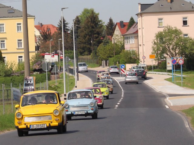 Nun der Nachfolger, ein 1,1l Viertakt-Motor mit 41 PS, einem Lizenzbau des EA111 von Volkswagen, dort bspw. im Polo verbaut. Und als Sahnehäubchen noch eine originale Rennpappe. Trabant 601S RS800 mit 771 cm³ und 65 PS. Wer sich traute, war damit 150 km/h schnell. Nach unserer erfolgreich absolvierten Tour bekam jeder Teilnehmer seinen exklusiven Trabi-Führerschein ausgehändigt. SUPER!
