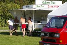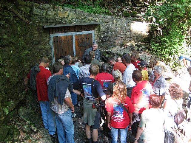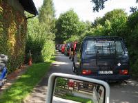 Der Campingplatz Schönrain in Gemünden war vom 22.-26. August 2007 das Quartier für unser 28. Treffen. Das höchstgelegene Wirtshaus im Spessart, die "Bayrische Schanz" wurde besucht und der Abend bei Gedichten am Lagerfeuer verbracht. Am späten Abend erwartete uns noch eine Überraschung - ein LLE mit dem Kennzeichen "B 92 LLE" stand auf dem Platz. Nein, kein Scherz! Dan aus Bukarest war mit Familie und Wohnwagen angereist, da haben wir nicht schlecht gestaunt. Die Ausfahrt zur Tropfsteinhöhle in der Märchenstadt Steinau, durch den Spessart und über kleine Landstraßen bei herrlichem Wetter zog die Blicke der Leute an. Nach dem Abstieg in die Höhle war die Brathähnchenfarm das nächste Ziel. Hier gab es lecker Hähnchen vom Holzkohlegrill. Am Nachmittag spielte Jost mit den Kindern "Mensch ärgere Dich nicht" - die Kinder waren selbst die Spielfiguren mit roten, blauen, gelben und grünen Schüsseln auf dem Kopf. Das sah schon lustig aus. Das Quiz, diesmal ein "Wer wird Millionär" konnte von keinem bis zur Million gelöst werden, aber Gewinner gab es trotzdem.