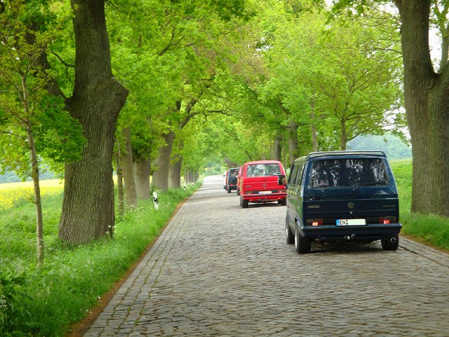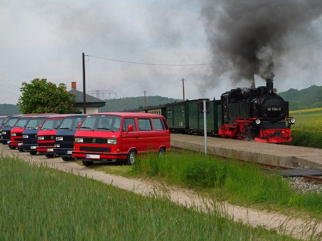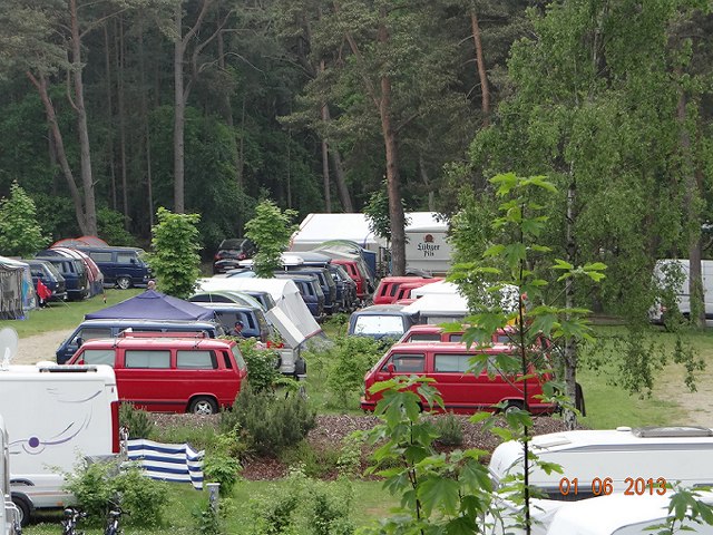 Die Wetterprognosen für Rügen waren miserabel - es war für ganz Deutschland Regen angesagt, aber vom 29. Mai - 2. Juni 2013 regnete es überall - nur auf Rügen zum 39. Treffen nicht. Bei strahlendem Sonnenschein war das Regenbogen-Camp in Göhren zur LLE-Stadt umgebaut und als Standort für viele Ausflüge der perfekte Ort. Erstmals fuhr Achim nicht mit seinem LLE auf den Platz, den brachte Wilfried mit. Achim legte die 250 km in sechs Stunden mit 30 PS und dem T1 Kastenwagen (auch genau so alt wie Achim) der Fa. Me-Fa Rohrreinigung zurück. Eine Führung durch den Lokschuppen Putbus am Freitag war für Dampflokfans vorbereitet. Im Anschluß ging es eine Station mit dem Zug nach Lauterbach zum Mittagessen am Hafen. Und am Samstag blieben erstmals die LLEs auf dem Platz. Der "Rasende Roland" wartete mit drei reservierten Waggons und einen Buffetwagen auf uns und zeigte uns die Insel, für viele war es sogar möglich, die Fahrt auf der Dampflokomotive im Führerstand zu genießen. Ein Mittagessen im Restaurant "Rasender Roland" in Binz sowie die Besichtigung von Prora rundeten das Programm ab, bevor es zurück nach Göhren ging. Noch zu erwähnen ist das Fischbuffet am Samstagabend.