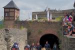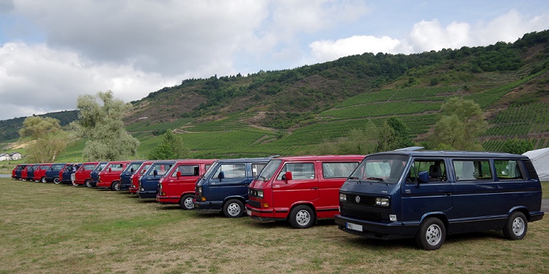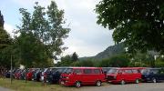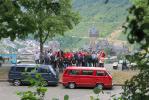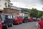 Das 41. Treffen, organisiert von der LLE-Fraktion aus Höhr-Grenzhausen, fand vom 18.-22. Juni 2014 auf dem Campingplatz "Mosel-Islands" in Treis-Karden an der Mosel statt und wurde von 79 VW-Bussen angesteuert. Donnerstag waren zwei Reisebusse von Nöten, um diese Menge zum Vulkan-Museum nach Mendig zu bringen. Der Lava-Dome und der Lavakeller wurden besichtigt. Im Anschluß tischte die Vulkan-Brauerei auf, es gab Braten vom Eifelschwein, und auch dem Vulkan-Bier wurde reichlich zugesprochen. Am Freitag ging es mit ein paar Bussen und unserem Reiseführer aus Ostfriesland - der aber hier aufgewachsen ist - nach Cochem zur Besichtigung der Reichsburg. Hans-Peter 0629 hatte einiges zu erzählen und führte uns durchs Städtchen. Auf der Rückfahrt gab es noch einen Fotohalt mit toller Aussicht von oben. Für Samstag war die Marksburg in Braubach das Ziel. Ja, wir werden älter, der Shuttlebus nach oben wurde von einigen genutzt. Der Ausblick auf den Rhein war fantastisch, das Wetter spielte wie immer mit. Uns ist klar - an die Mosel, da kommen wir nochmal.
