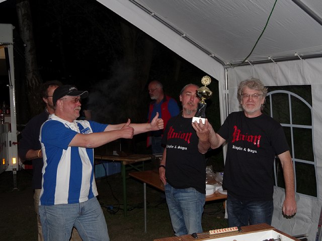 60 Jahre Achim, anders kann dieses 45. Treffen vom 4.-8. Mai 2016 in Berlin nicht beschrieben werden. Zu Achims 60. Geburtstag war eingeladen. Die Limiteds kamen aus allen Himmelsrichtungen, Georg 1366 aus Österreich, Lorenz 1329 aus Finnland und zum zweiten Mal Leigh 2436 aus Großbritannien. T-Shirts und Gläser waren vorbereitet, auch das Wetter war - wie immer - von Achim gemacht. Der Teufelsberg, die ehemalige Abhörstation der US-Amerikaner während des kalten Krieges, und das Olympische Dorf von 1936 wurden besucht. Ja, so kann man einen Geburtstag feiern, mit über 65 LLEs und Gästen. Unter den zahlreichen und liebevollen Geschenken möchten wir eines ganz besonders hervorheben: die 1780 in 1:8 aus LEGO-Steinen! Achim möchte sich hier für alles noch einmal recht herzlich bedanken. Es war einfach nur gigantisch. Den von Achims Bruder Michael ausgelobten Pokal in einem kleinen Tischkickerturnier holten sich Manfred 0971 und Bernd 0618 als 'Union Berlin'. Damit unterlag die Tante Hertha im Derby. Unser Helmut 0008 konnte mit seiner Spendentombola wieder ca. 1.000 € zugunsten der Kinderkrebsstiftung einsammeln. Einfach toll!