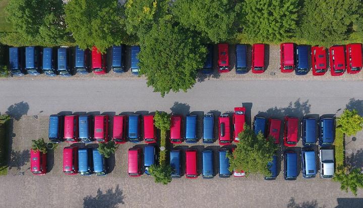 Klick aufs Bild für eine größere interaktive Ansicht. Jeder kann seinen Bulli suchen und finden. In dieser Reihenfolge kommen dann alle durchs Video...