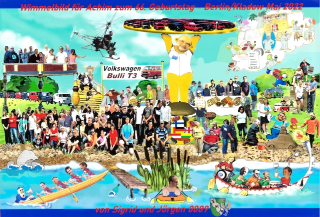 Das recht kurzfristig und „außer der Reihe“ anberaumte 58. Treffen in Berlin vom 4. – 8. Mai 2022 wurde zwar von nur 25 Bussen besucht, aber dieser kleine Kreis ließ es sich nicht nehmen, auf Achims 66. Geburtstag gebührend die Gläser zu erheben – schließlich „ist mit 66 noch lange nicht Schluss“… Was stand diesmal auf dem Programm? Eine knapp vierstündige Stadtrundfahrt am Donnerstag im offenen Doppeldecker-Bus zeigte Berlin von seiner schönsten Seite. Die Dampferfahrt am Freitag über den Wannsee bis hin zum Regierungsviertel bei strahlendstem Sonnenschein war für alle etwas ganz Besonderes – schließlich sieht man Berlin von der Wasserseite aus nicht alle Tage. Unsere traditionelle Bulli-Ausfahrt am Samstag zum Krongut Bornstedt wurde mit einem herzhaft-leckeren Gulasch mit Spätzle belohnt, während uns der Samstagabend mit Kassler und Sauerkraut "sponsored by LLE-Kartei“ wieder einmal zeigte, wie gut es uns geht. Und so war diese kleine, aber feine Zusammenkunft schnell vorüber, doch im Juni schon sehen wir uns in Bremen wieder.