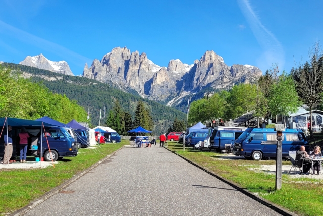 Der Berg ruft Teil 2 – Ja, es war kühl, es war nass und dennoch war das 63. Treffen der LLE-Kartei vom 25. Mai – 2. Juni auf dem Campingplatz Family & Wellness Resort Vidor in Pozza di Fassa wieder einmal wunderschön. Erneut eine Woche „Auszeit genießen“ auf einem der Top 10 Campingplätze Europas am Fuße des atemberaubenden Bergpanoramas des Fassatals in den Dolomiten im Trentino. Der Ausflug zum Gardasee war eine gelungene Abwechslung zu der Kulisse der mächtigen Berge. Eine gemütliche Bootsfahrt über den Gardasee wurde bei trockenem und warmen Wetter ausgiebig genossen. Die engen Gassen von Limone und Malcesine mit ihren vielen kleinen Geschäften luden zu einem netten Zeitvertreib ein und waren durchaus sehenswert. Unsere kleine „Tour durch die Berge“ mit unseren Bussen wurde wetterbedingt auf Samstag verschoben. Das zweite Frühstück am Fedaia-Stausee war das Highlight am Vormittage: die 31 angereisten Limiteds auf dem Parkplatz, Skifahrer auf der Piste daneben. Ja, es hatte geschneit, aber die Straßen waren frei und nicht gesalzt. Bilder dieser herrlichen Szenerie wurden reichlich von einem bestellten Fotografen gemacht. Was noch unbedingt zu erwähnen wäre, der Samstagabend: das Abendessen mit italienischen Flair und Livemusik – ein kulinarischer Hochgenuss in zweierlei Hinsicht. Fazit unseres zweiten Italien-Stops: Eine Wiederholung wird von vielen Teilnehmer/-innen gewünscht, es wird aber über einen Termin außerhalb unserer zweijährlichen Treffen nachgedacht. Und einen Tick wärmer dürfte es dann auch sein…